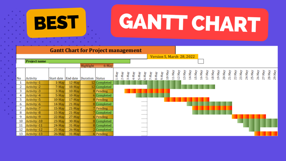 This is high Quality Gantt chart. The purpose is to;